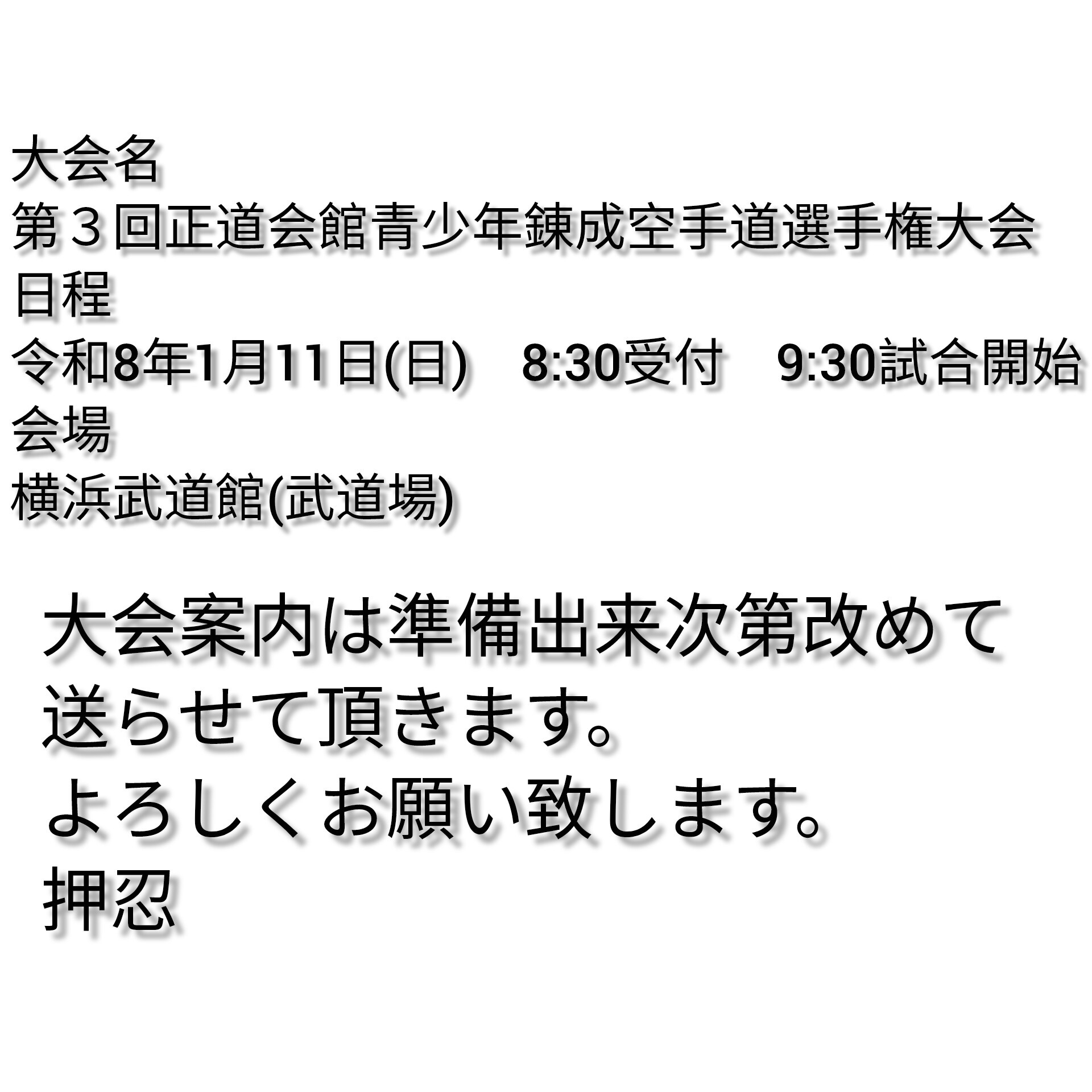 大会案内が整いましたら正道会館沢田道場ホームページより申込書ダウンロードお願い致します。